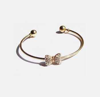 繊細なリボンに煌めくストーンを添えた華奢なブレスレット。可憐さと上品さを併せ持つ、大人の女性の手元を飾る一本です。